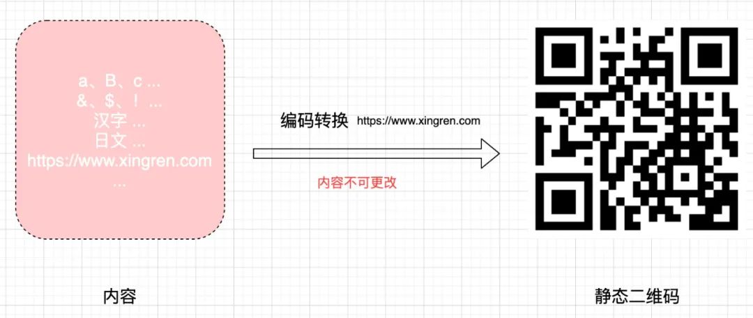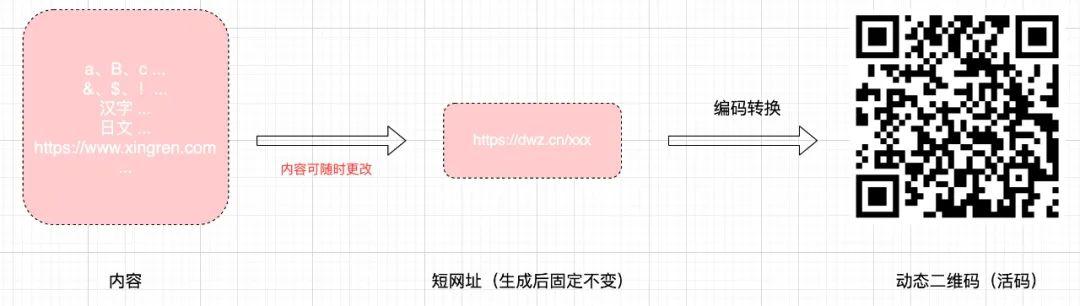动态二维码也称之为活码,关键就在于“活”,“活”就是内容可变,但是二维码不变。活码的优点其实就是静态二维码的缺点,支持随时修改二维码的内容且二维码图案不变,可跟踪扫描统计数据,支持存储大量文字、图片、文件、音视、视频等内容,同时生成的图案简单易扫。实际上二维码是按照指定的规则编码后的一串字符串,通常大部分情况下是一个网址,在二维码出现之前,我们访问一个网址是打开浏览器输入网址后按下回车即可访问相应的网站,而有了二维码之后,我们使用软件扫描二维码,软件首先会做一次从二维码到文本的解析、转换,然后根据解析出来的文本结果判断是否是链接,是则跳转到这个链接,尽管对我们而言操作方式改变了,但其原理是相同的。