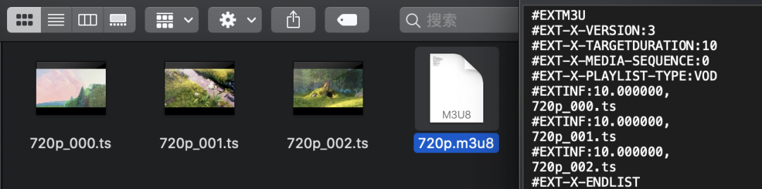 文件,其中除了包含一些元数据,还记录被分割视频的存放位置。分割的视频是 .ts