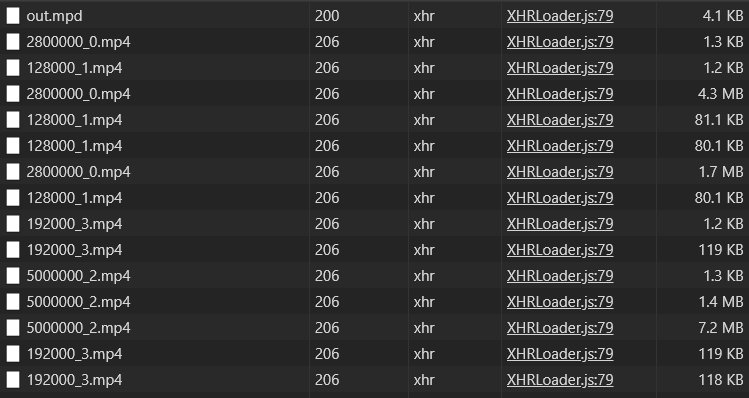 可以看到同样在发现网络环境不错的情况下,自动请求了高码率的片段。更多关于 dash.js 请参考 官方文档。