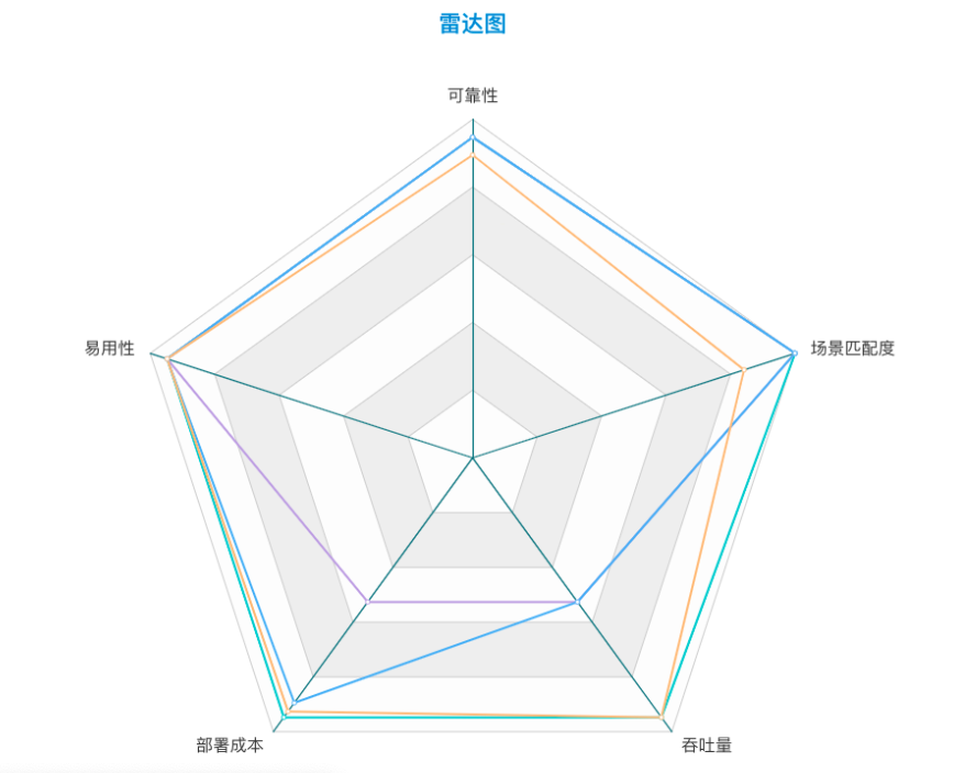 如果给定的某一个场景后,画出雷达图,那么四种不同 MQ 的实际情况可能类似上图,此时具体选择什么,就无需再纠结了。根据项目中的实际需求对上述维度进行排序即可。但是前提一定以满足场景匹配度和吞吐量为前提。