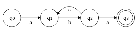 我们通过子集构造算法将 NFA 转为 DFA,设我们有一个 ε-NFA E = (Qe, ∑, δe, q0, Fe),其对应的 DFA D 为: