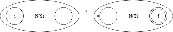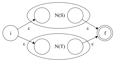 如果 E 和 F 都是正则表达式,则 E | F 是正则表达式,表示 L(E) 和 L(F) 的并(参考上面语言的并运算),即:L(E | F) = L(E) ∪ L(F)