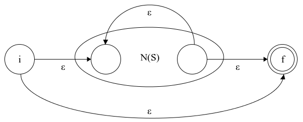 如果 E 是正则表达式,则 E * 是正则表达式,表示 L(E) 的闭包(参考上面语言的闭包运算),即: