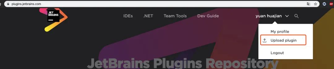 我们当然希望自己写的插件可以上架市场被所有人使用,所以我们进行第一次上传,登录到https://plugins.jetbrains.com/ ,注册账户后点击 Upload plugin