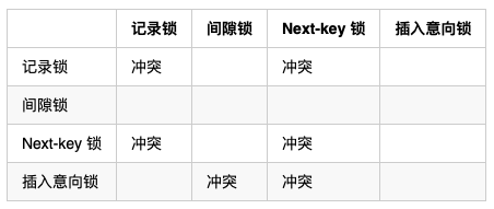 行锁兼容矩阵(横向是已持有锁,纵向是正在请求的锁)