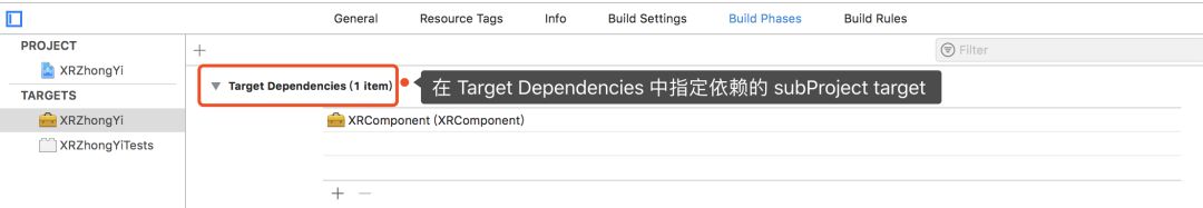 然后将这个子工程的某个 target 作为主工程 target 的依赖,从而在 build 主工程 target 的时候,顺便也会编译子工程对应的 target。