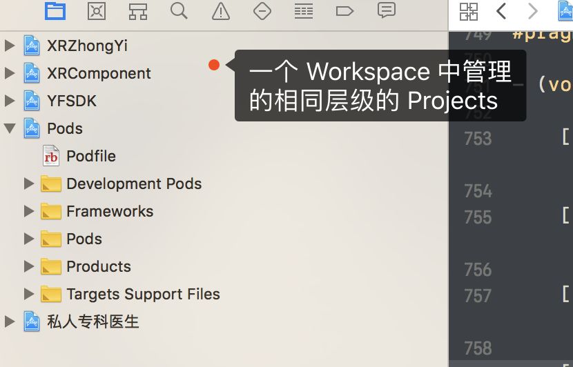 在 iOS 开发中,我们常常使用 Cocoapods 来管理三方库,它会把这些三方库的源码组装成一个 project,和主工程一起放入到 workspace 中,自动配置好主工程与 pods 库之间的依赖。所以如果引入了 Cocoapods,我们必须打开这个新的 workspace 才能正常 build 原来的项目。关于 Cocoapods,我们在后面的文章中再详细介绍