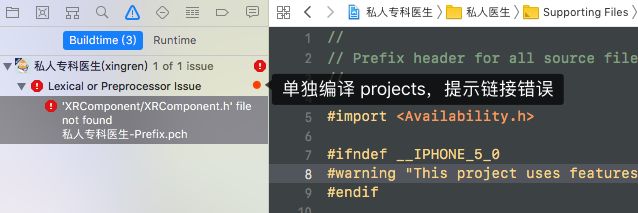 注意到,当你把不同的 projects 放到一个 workspace 中管理后,你仍然可以用 Xcode 单独打开其中的某一个 project,但是如果它涉及到对其它 project target 的依赖,这时候你无法在这个单独的窗口中编译成功。