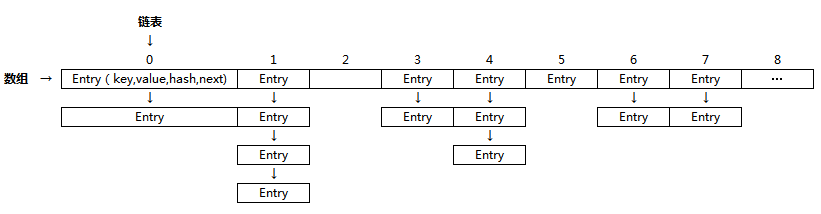 JAVA 语言提供了大量丰富的集合, 比如 List, Set, Map 等。其中 Map 是一个常用的一个数据结构,HashMap 是基于 Hash 算法实现 Map 接口而被广泛使用的集类。HashMap 里面是一个数组,然后数组中每个元素是一个单向链表。但是 HashMap 并不是线程安全的, 在多线程场景下使用存在并发和死循环问题。HashMap 结构如图所示: