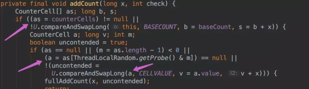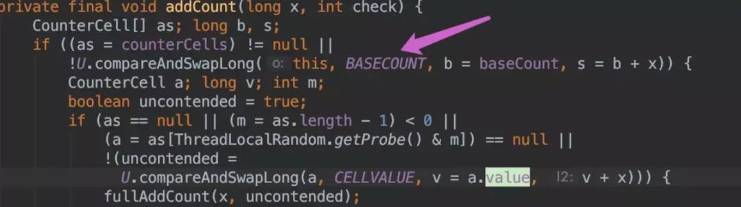 代码。ConcurrentHashMap 提供了 baseCount、counterCells 两个辅助变量和一个 CounterCell 辅助内部类。sumCount()