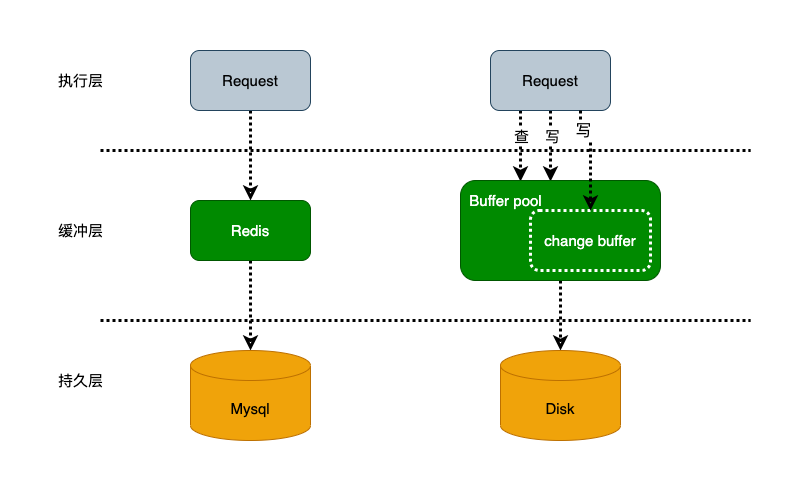 也是类似,server 层的查请求过来会先打在 buffer pool