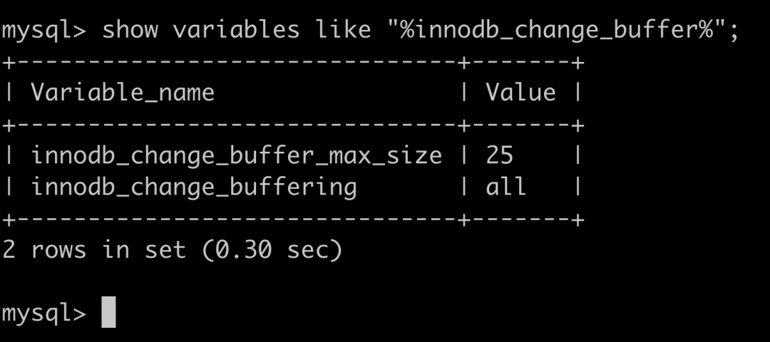 all。默认值。开启 buffer none。不开启 change buffer inserts。只是开启 buffer insert 操作 deletes。只是开启 delete-marking 操作 changes。开启 buffer insert 操作和 delete-marking 操作 purges。对只是在后台执行的物理删除操作开启 buffer 功能