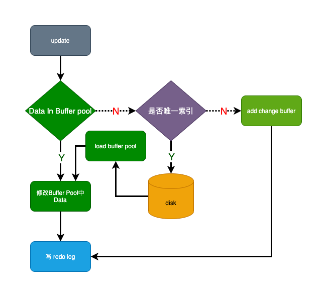 中是否存在这条数据若存在则直接更新 buffer pool否则 add change buffer写 redo log一条根据唯一健更新的语句。