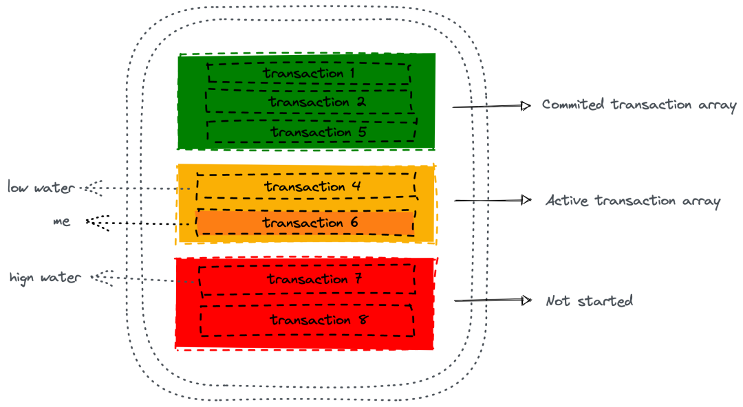 低水位:事务ID 最小值 高水位:事务ID 最大值 + 1