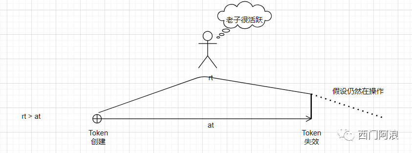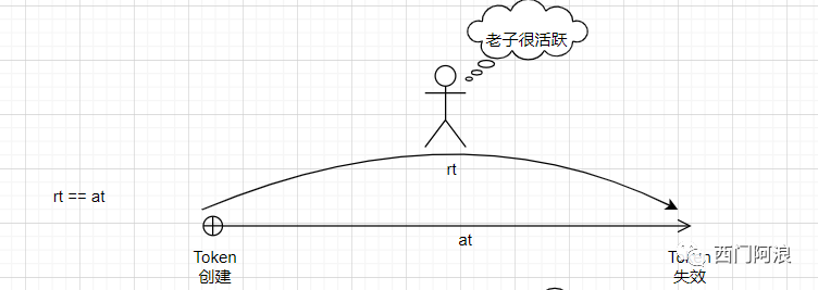 由活跃用户分析可知,当 rt >= at,用户在at时间内都是活跃的。设accessToken的有效期为用户的活跃时间rt,当rt <= refresh_Time,直接刷新rt。所以可以认为 [accessToken创建开始时间点 ,2 * accessToken有效时长 ] 时间内用户是活跃的