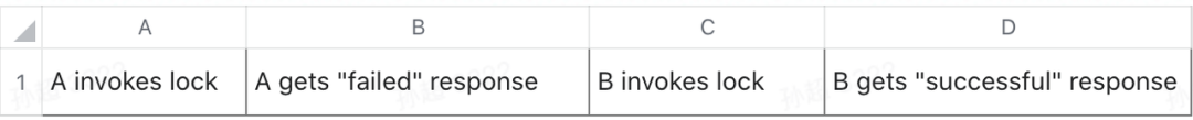 现在根据上面提到的直观的解释来理解这件事:根据 real-time 实际历史可以看出,A 和 B 在并发争锁,所以谁先谁后是不确定的,因为并发,所以也就能 reorder 出 2 个 结果了,并发本身执行序就不可确定,所以怎么解释都是可以的,又因为第 2 个 reorder 的历史是满足正确调度的程序语义的,则可以作为并发执行过程的解释,所以实际历史满足线性一致性。