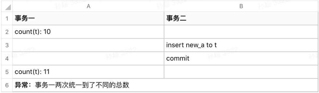 一个事务执行过程中不会读到本事务具体行的其他事务提交的数据。存在幻读异常:事务进行中读到了不一致的数据。现实比如读写都加锁且持续到事务结束,但并没有加表锁,不相关的行还是可以变更。