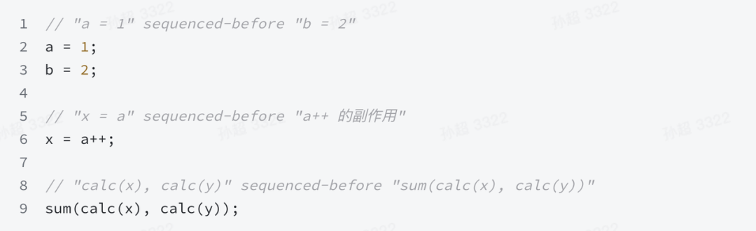 在同一线程中,evaluation A 根据语言定义的执行序 sequenced-before evaluation B。比如