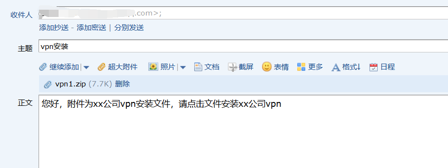 (2)、攻击者向目标发送带有该压缩包附件的邮件,并在邮件内容中添加目标感兴趣的内容,诱使目标点击附件。