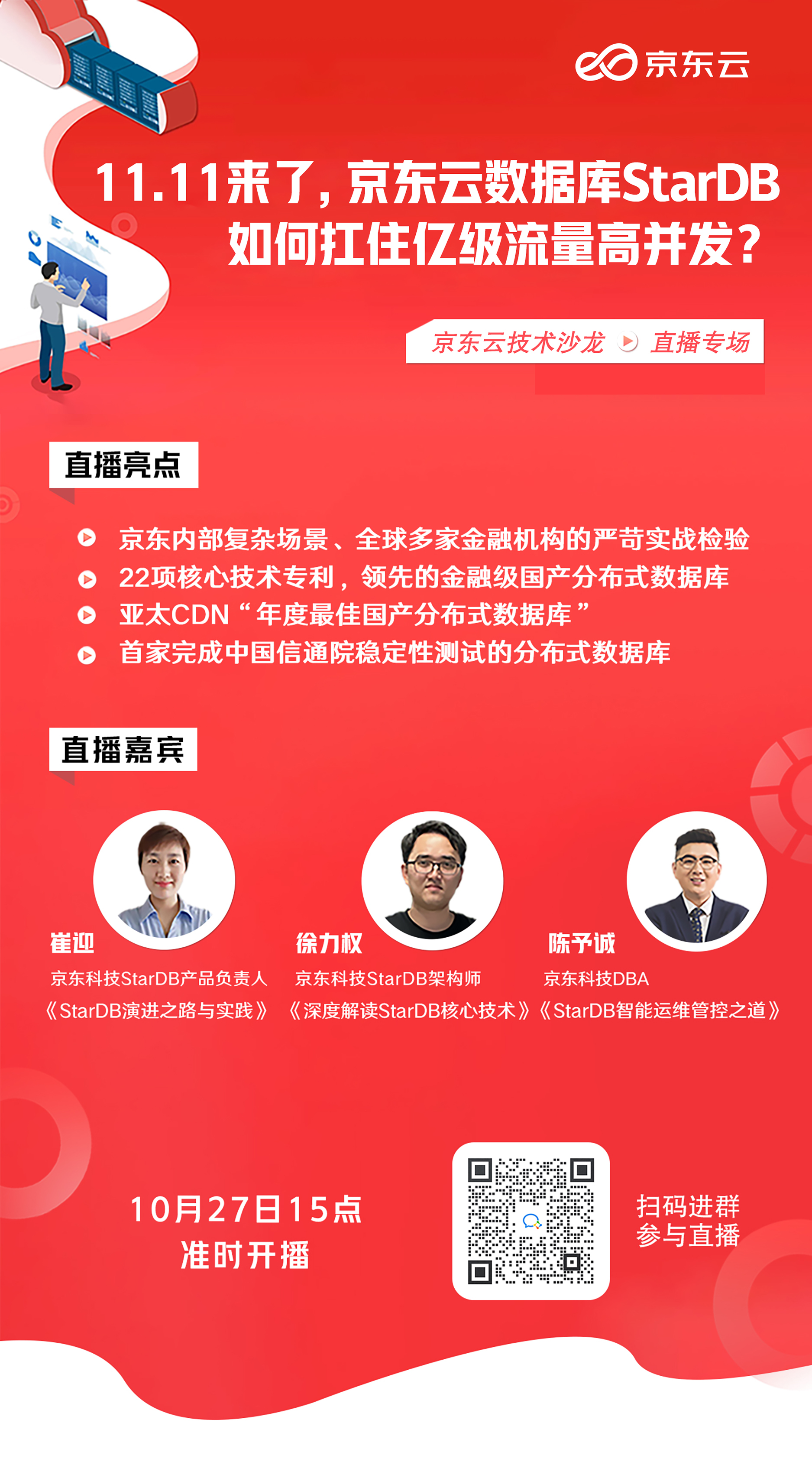 10月27日,来京东云技术沙龙直播,了解这款性能强劲的金融级国产分布式数据库!