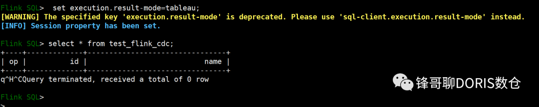 ./bin/sql-client.sh embedded > set execution.result-mode=tableau;