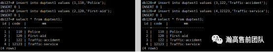 insert into duptest1 values (3,122,’Traffic-accident’);insert into duptest1 values (4,12123,’Traffic-service’);