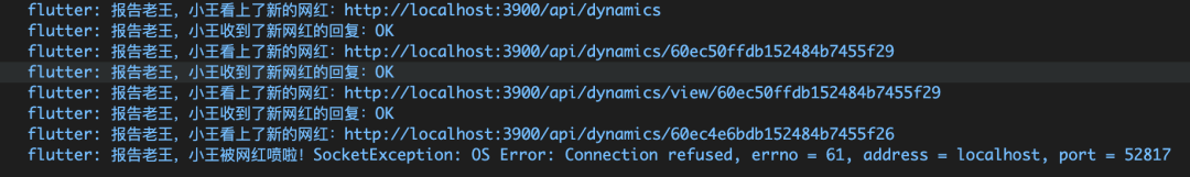 static Dio getDioInstance() { if (_dioInstance == null) { _dioInstance = Dio(); _dioInstance.interceptors .add(InterceptorsWrapper(onRequest: (options, handler) { print('报告老王,小王看上了新的网红:' + options.path); return handler.next(options); }, onResponse: (response, handler) { print('报告老王,小王收到了新网红的回复:' + response.statusMessage); handler.next(response); }, onError: (DioError e, handler) { print('报告老王,小王被网红喷啦!' + e.message); return handler.next(e); })); } return _dioInstance;}