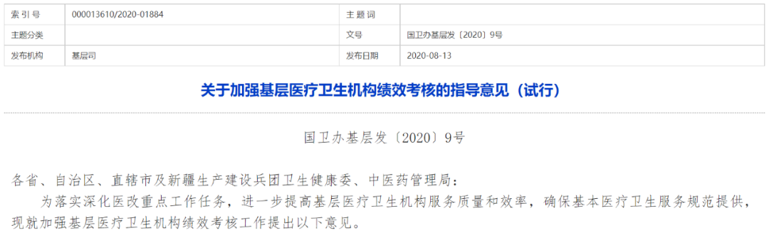 2020年11月和2021年5月,浙江省卫健委分别发布了《关于加强基层医疗卫生机构绩效考核的实施意见(试行)》《关于进一步加强基层医疗卫生机构绩效考核的通知》两份文件,在完成国家规定动作的同时,结合实际强调了支撑体系建设、统筹融合、强化结果应用等方面内容,引导浙江省基层医疗卫生机构规范管理、科学评价。