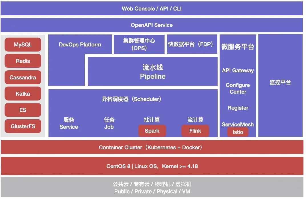 数据平台可以作为上层服务独立存在。但是随着业界数据的快速膨胀,大数据处理能力已经逐渐变成了一种基础平台能力,并且由于数据平台底层依赖大量的云原生大数据组件,例如 spark,flink,kafka,hbase 等,单个组件作为服务都不能提供解决方案。数据平台可以完全整合这些组件,将数据平台作为云原生服务的一种,则可以更加便捷、快速的部署以提供通用大数据解决方案。