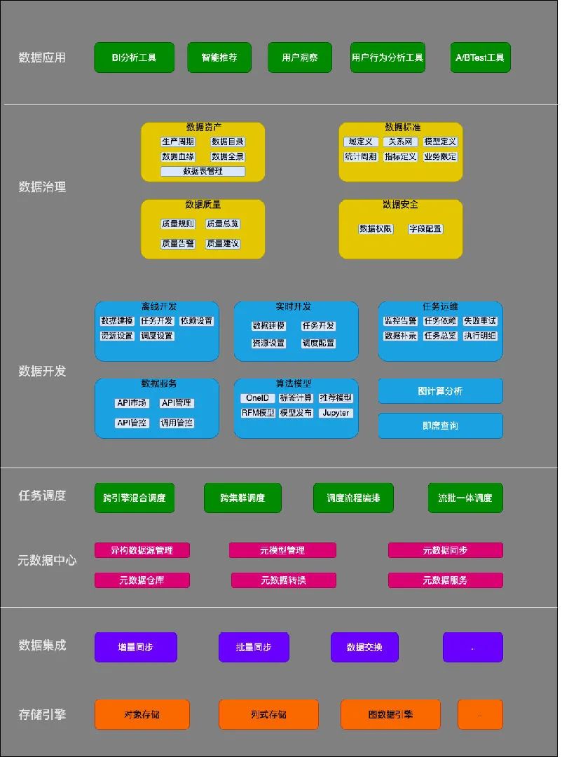 数据平台应该是包含数据集成、数据开发、数据治理、数据湖等全流程的综合性平台。可以“一揽子”的满足数据获取、数据计算、数据管理的需求。