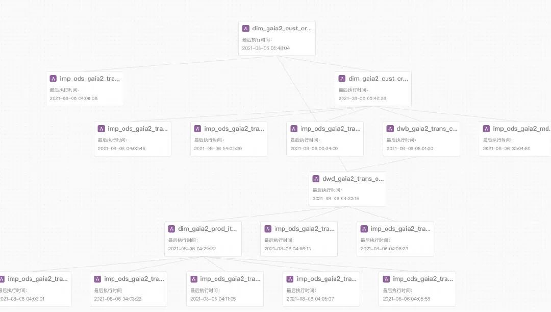 在数据流动的过程中,重点要解决复杂的依赖关系,尤其是其中某些节点出现失败、异常的时候,能够快速定位影响范围,找出上下游所有的节点进行补救措施。