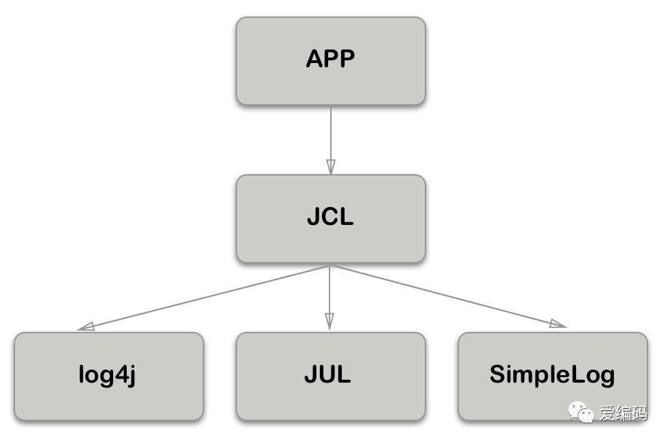 4、Apache见此,开发了JCL(Jakarta Commons Logging),即commons-logging-xx.jar。它只提供一套通用的日志接口api,并不提供日志的实现。很好的设计原则嘛,依赖抽象而非实现。这样应用程序可以在运行时选择自己想要的日志实现组件。