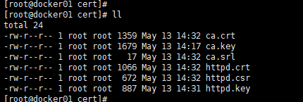然后将httpd.key和httpd.crt,放到/etc/harbor/cert/目录下,后面会用到。