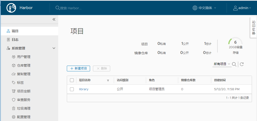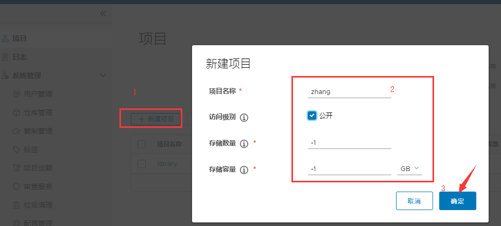 根据你的项目名新建项目,这样才能将镜像推动到harbor镜像中心。