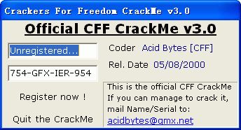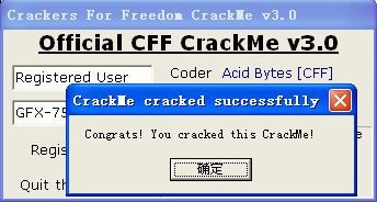 上一篇是使用入门,现在我们开始正式进入破解。今天的目标程序是看雪兄《加密与解密》第一版附带光盘中的 crackmes.cjb.net 镜像打包中的 CFF Crackme #3,采用用户名/序列号保护方式。原版加了个 UPX 的壳。刚开始学破解先不涉及壳的问题,我们主要是熟悉用 OllyDBG 来破解的一般方法。我这里把壳脱掉来分析,附件是脱壳后的文件,直接就可以拿来用。先说一下一般软件破解的流程:拿到一个软件先别接着马上用 OllyDBG 调试,先运行一下,有帮助文档的最好先看一下帮助,熟悉一下软件的使用方法,再看看注册的方式。如果是序列号方式可以先输个假的来试一下,看看有什么反应,也给我们破解留下一些有用的线索。如果没有输入注册码的地方,要考虑一下是不是读取注册表或 Key 文件(一般称 keyfile,就是程序读取一个文件中的内容来判断是否注册),这些可以用其它工具来辅助分析。如果这些都不是,原程序只是一个功能不全的试用版,那要注册为正式版本就要自己来写代码完善了。有点跑题了,呵呵。获得程序的一些基本信息后,还要用查壳的工具来查一下程序是否加了壳,若没壳的话看看程序是什么编译器编的,如 VC、Delphi、VB 等。这样的查壳工具有 PEiD 和 FI。有壳的话我们要尽量脱了壳后再来用 OllyDBG 调试,特殊情况下也可带壳调试。下面进入正题: