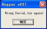 这个 crackme 已经把用户名和注册码都输好了,省得我们动手^_^。我们在那个“Register now !”按钮上点击一下,将会跳出一个对话框: