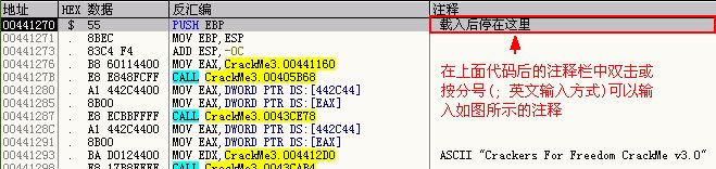 我们所看到的那些 PUSH EBX、 PUSH ESI 等都是调用子程序保存堆栈时用的指令,不用管它,按 F8 键一步步过来,我们只关心关键部分: