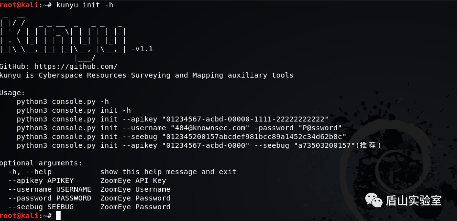 kunyu init --apikey <your zoomeye key> --seebug <your seebug key>