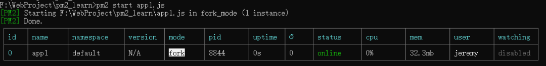 $ pm2 start app1.js