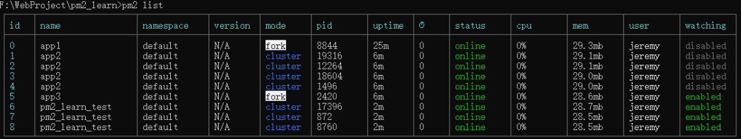 PM2的管理命令都很简单直白,具体如下: