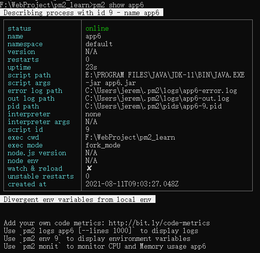 为什么这里要提这个PM2 ecosystem,而不愿意多讲呢。因为下面要讲的如何使用PM2来启动和管理非Node.js程序 (例如:Spring Boot项目),会用到这个特性,所以先给大家混个眼熟。