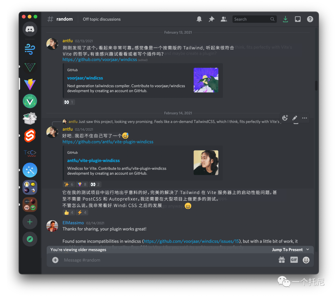 在正式开始前,先来聊聊背景。如果你还不认识我,我叫 Anthony Fu,是 Vite[9] 团队的成员,也是 Vitesse[10] (Vite 社区最受欢迎的起手模板之一) 的作者。我享受原子化 CSS 带来的快速开发体验,而因此选择了 Tailwind CSS[11] 作为 Vitesse 的默认 UI 框架。虽然 Vite 较 Webpack 等工具相比,在加载速度上有了大幅提升,但由于 Tailwind 生成了数 MB 的 CSS,使得加载与更新 CSS 成为了整个 Vite 应用的性能瓶颈。我曾以为这是使用为了原子式 CSS 的一种权衡,直到我发现了 Windi CSS[12]。