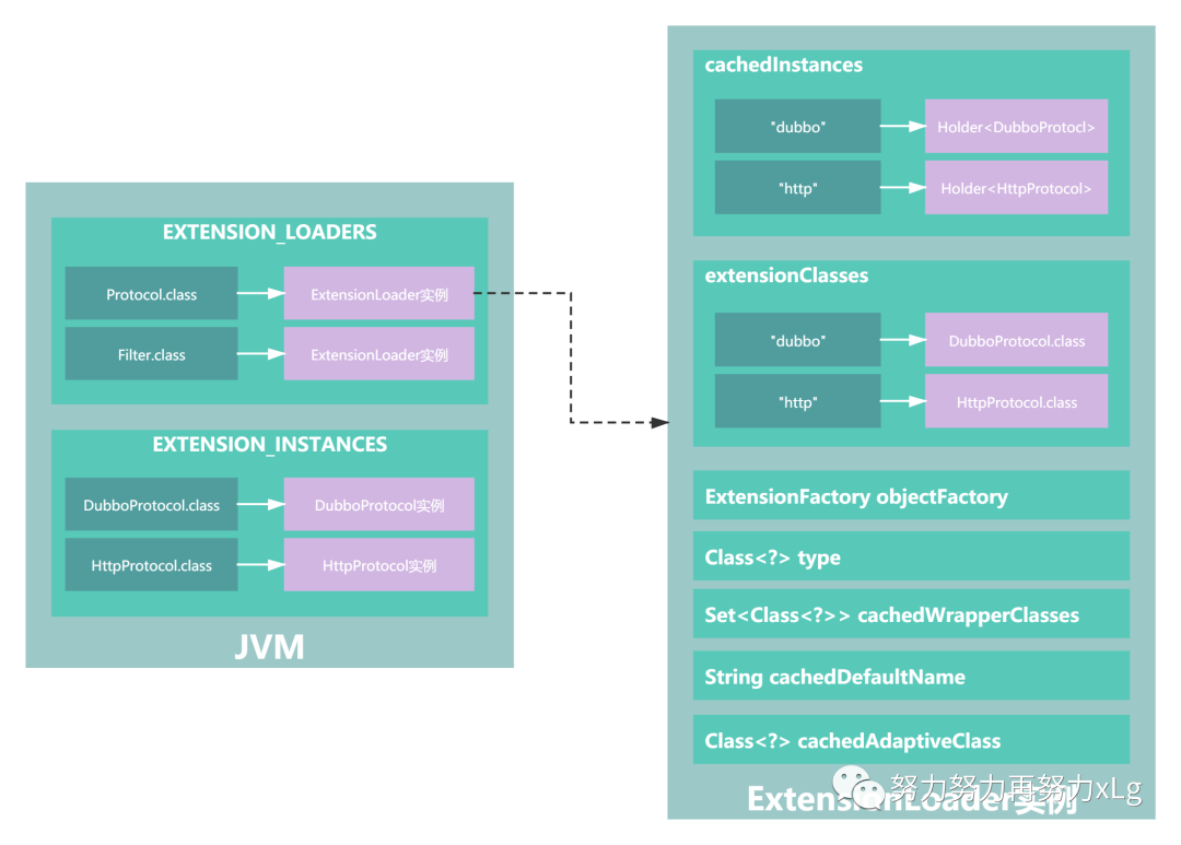 在ExtensionLoader类的内部有一个static的ConcurrentHashMap,用来缓存「某个接口类型所对应的ExtensionLoader实例」