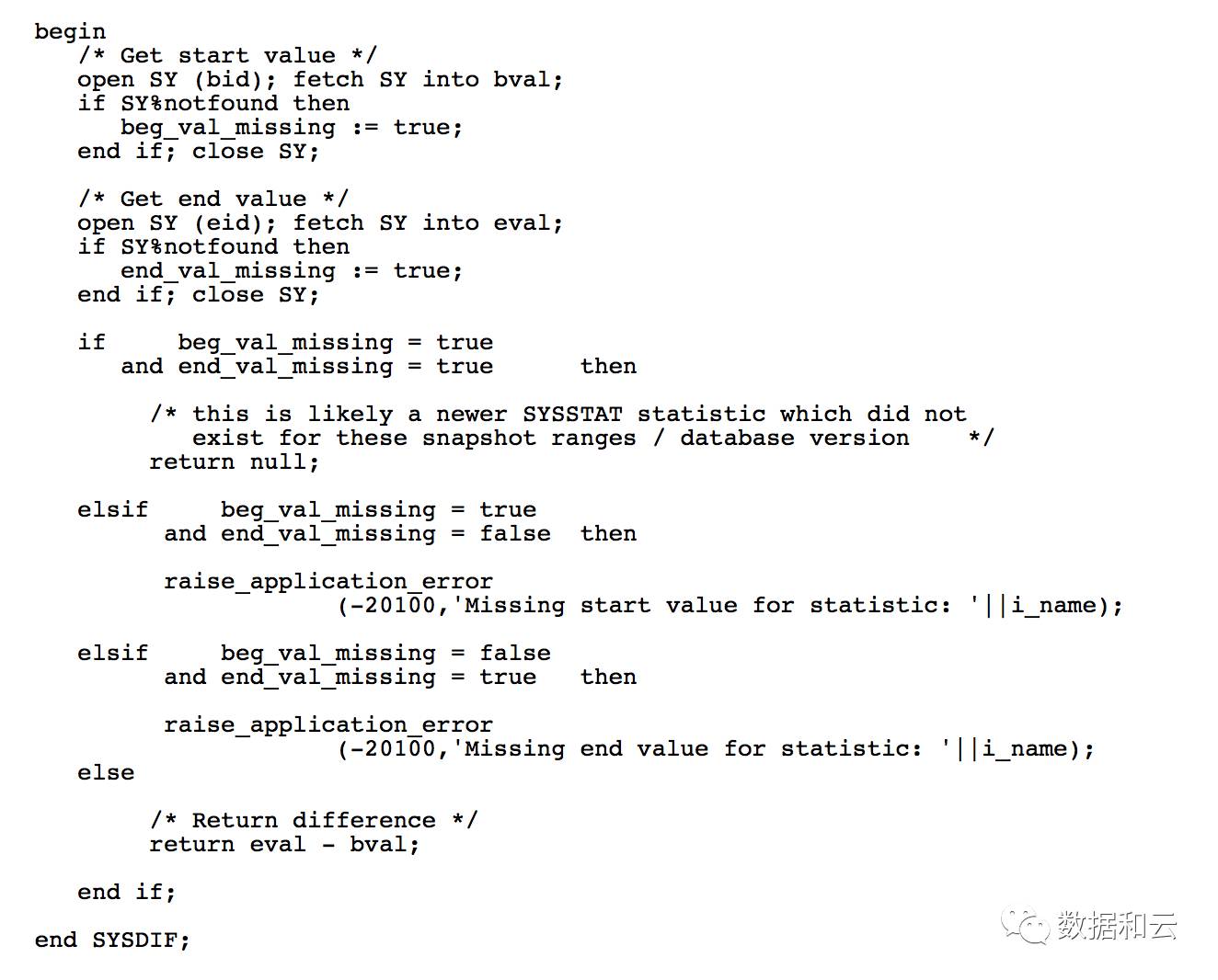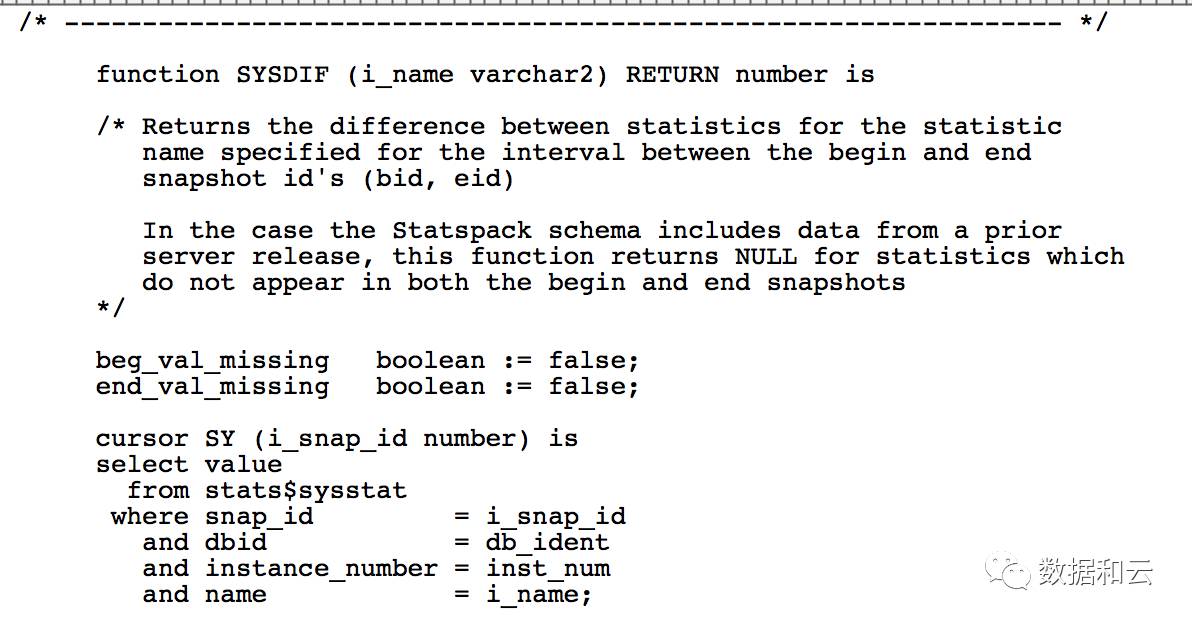 Statspack中的这些数据差值都是通过一个内部函数SYSDIF来获得的,这个函数的内容和算法可以从spcpkg.sql文件中找到,我们收录一下SYSDIF函数作为说明,其他相关数据的计算方法同样可以从该文件中找到,当大家试图深入了解或打算解除Statspack的相关疑惑时,可以尝试从这个文件入手。