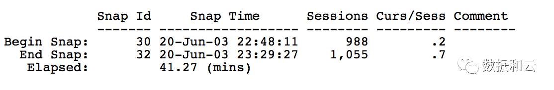 (2)接下来是数据库采样时段信息,这一部分记录了数据库采样的时间,以及采样点数,这部分信息对于report来说是十分重要。