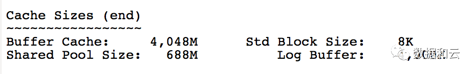 (3)Cache信息,这一部分列举了数据库的内存分配信息,由于从Oracle 9i开始,主要SGA参数可以进行动态调整,所以此处的Cache信息来自采样结束时刻: