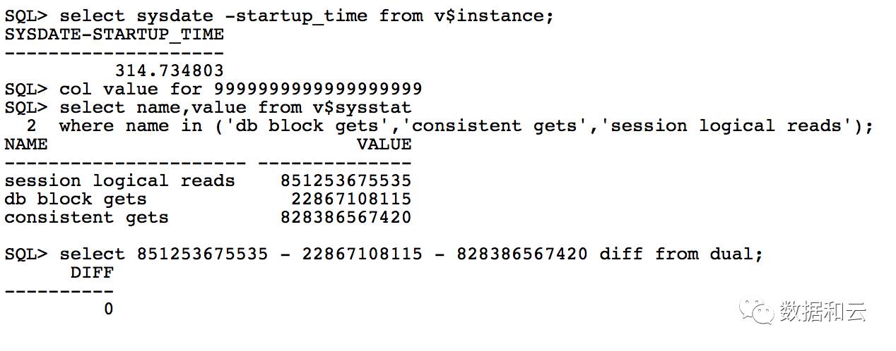 从v$sysstat视图的统计数据,可以清楚地看到这一关系(以下是一个Oracle 10g产品库的输出):