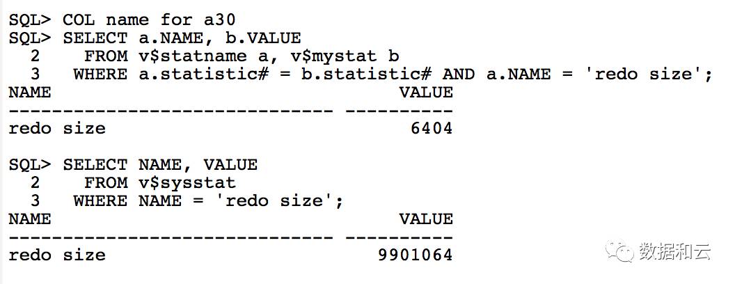 对比一下,Session的Redo Size完全累计记入v$sysstat中: