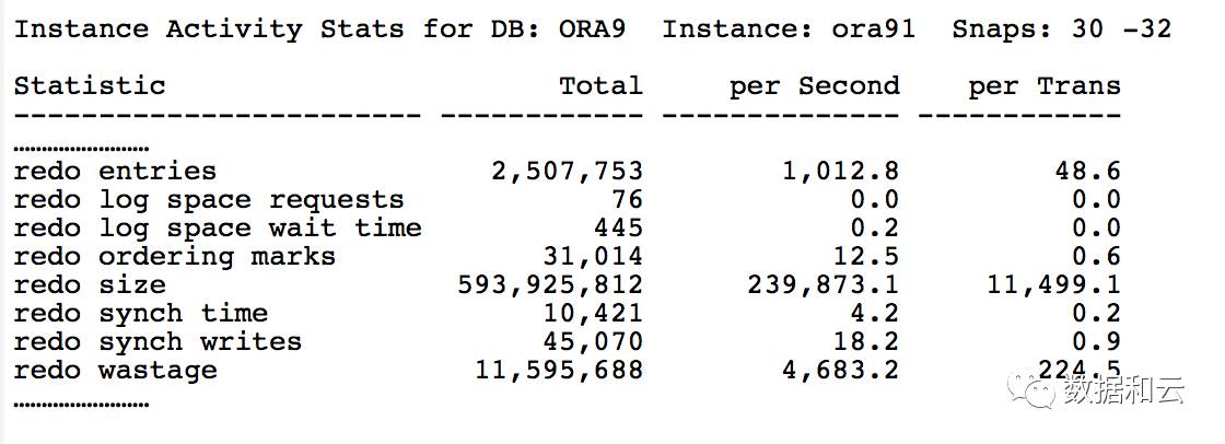 这部分信息来自v$sysstat视图收集的统计信息,Statspack将这部分信息定时收集记录在stats$sysstat字典表中,然后通过前后对比,得出在报告时段数据库的负载变化。例如这里的redo size就代表在起始采样点和结束采样点之间,数据库生成的redo大小。