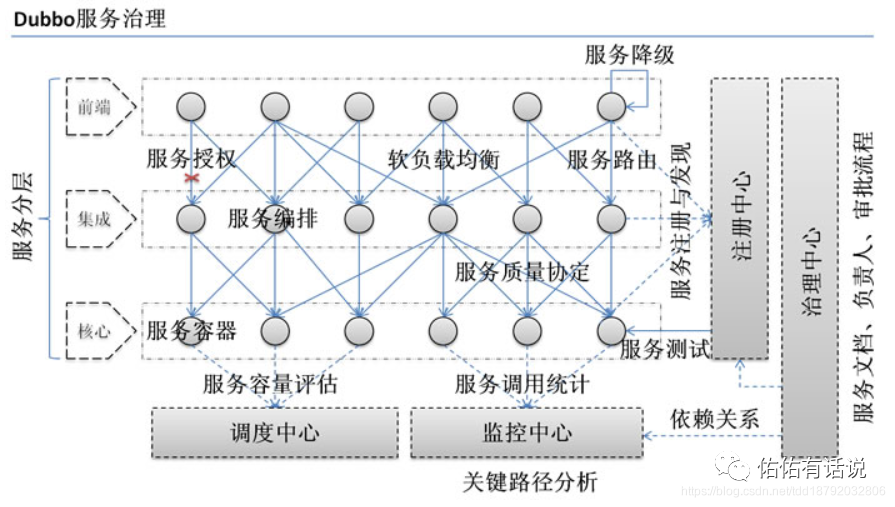 解决: 这时,需要在注册中心定义架构体系,列明有哪些层的定义,每个服务暴露或引用时,都必须声明自己应用属于哪一层,这样注册中心能更快的发现架构的腐化现象。